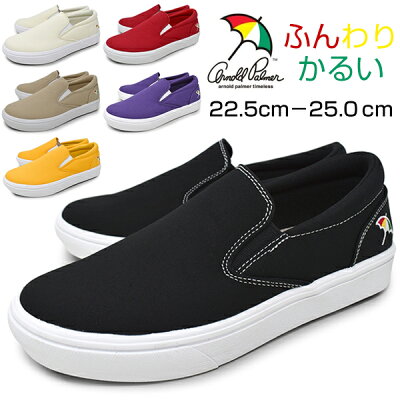 スニーカー レディース スリッポン 軽量 ローカット キャンバス ブランド アーノルドパーマー arnold palmer 白 ホワイト 黒 ブラック 通学 小学校 中学校 高校 軽い 靴 22.5cm 23cm 23.5cm 24cm 24.5cm 25.0cm