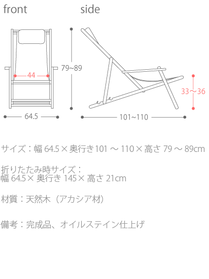 サイズ: 幅64.5×奥行き101〜110×高さ79〜89cm 折りたたみ時サイズ: 幅64.5×奥行き145×高さ21cm 材質: 天然木(アカシア材) 備考:完成品、オイルステイン仕上げ