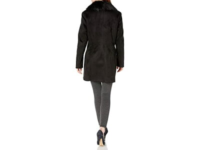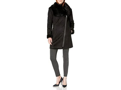 (取寄) カルバンクライン レディース ウィメンズ ウィズ アシトメトリカル ジッパー ディテール アンド フォー ファー トリムド カラー Calvin Klein women Womens Shrarling with Asytmetrical Zipper Detail and Faux Fur Trimmed Collar Black